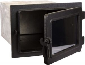 Чугунная дверца по своим характеристикам находится между стеклянной и железной. Срок ее эксплуатации больше чем у стекла, но меньше, чем у стали. Она уступает по внешнему виду рассмотренным ранее вариантам.