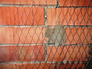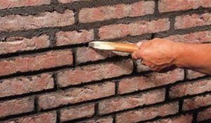 Углубление швов между кирпичами. Особое внимание необходимо уделить щелям. Углубите и расчистите их с помощью инструментов в глубь примерно на один сантиметр. В этом случае кроме щетки можно использовать и болгарку. Остатки пыли можно удалить обычной поролоновой губкой, смоченной в воде.