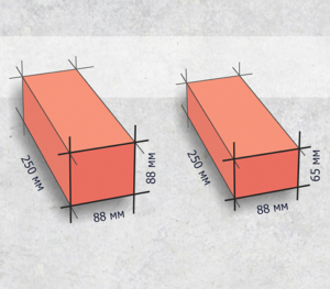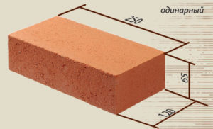 На строительном рынке вы можете найти несколько типов кирпичных деталей различного размера. Стандартным, который используют практически все мастера, является материал размером 250x120x65.